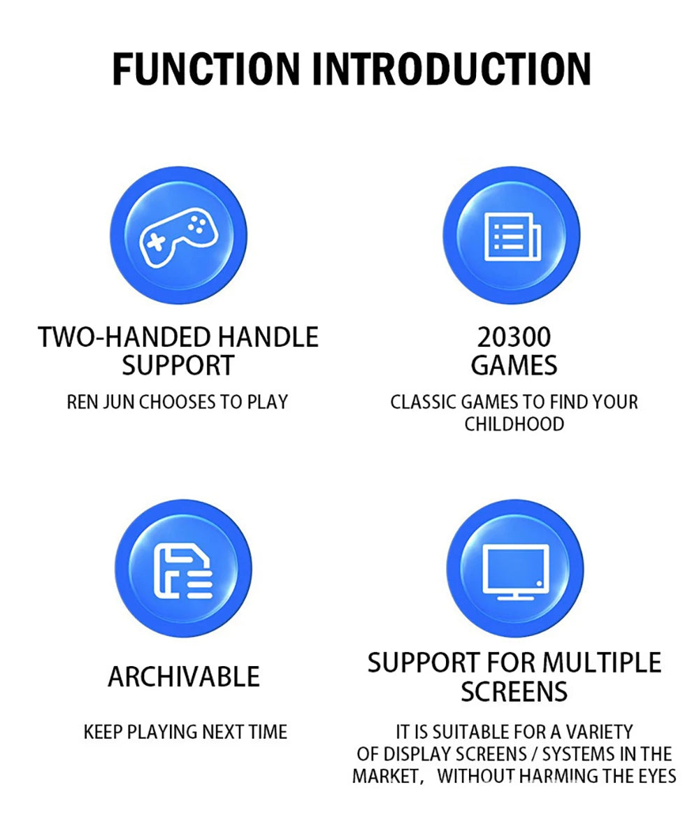 Game Download Support:This game console supports gamers to search games, supports gamers to customize their favorite games and can play and download games by themselves. Equipped with a wireless dual joystick, you can play all the excellent games, let you enjoy the game more, let you remember quickly and enjoy childhood joy! If you need a game list, please contact customer service for the game list!