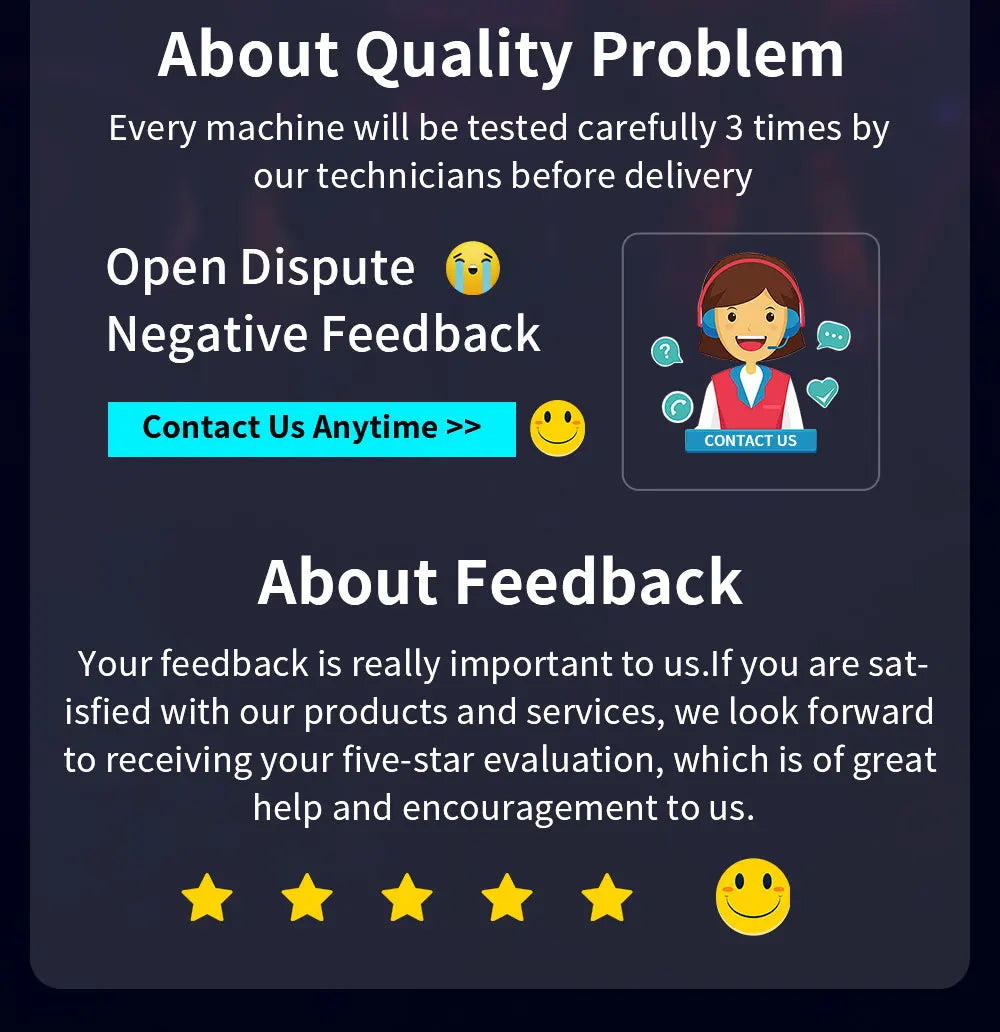 Each of our products will be sent out after testing, if you have any problem before buying or using the product, please contact us, we will be happy to help you.