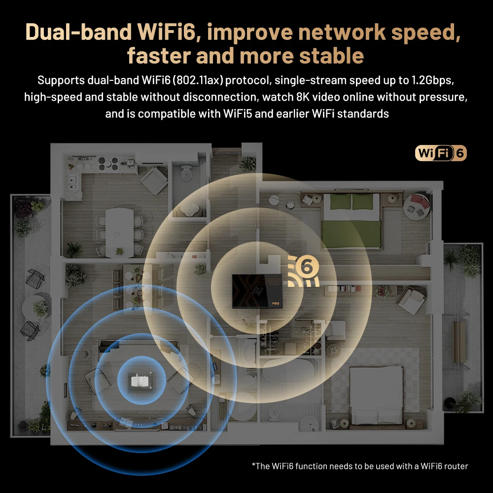 X5 PRO box runs the latest Android TV 12.0 OS. Enjoying a more stable and more smooth for user interface, perfect for home theater home entertainment business use, etc.