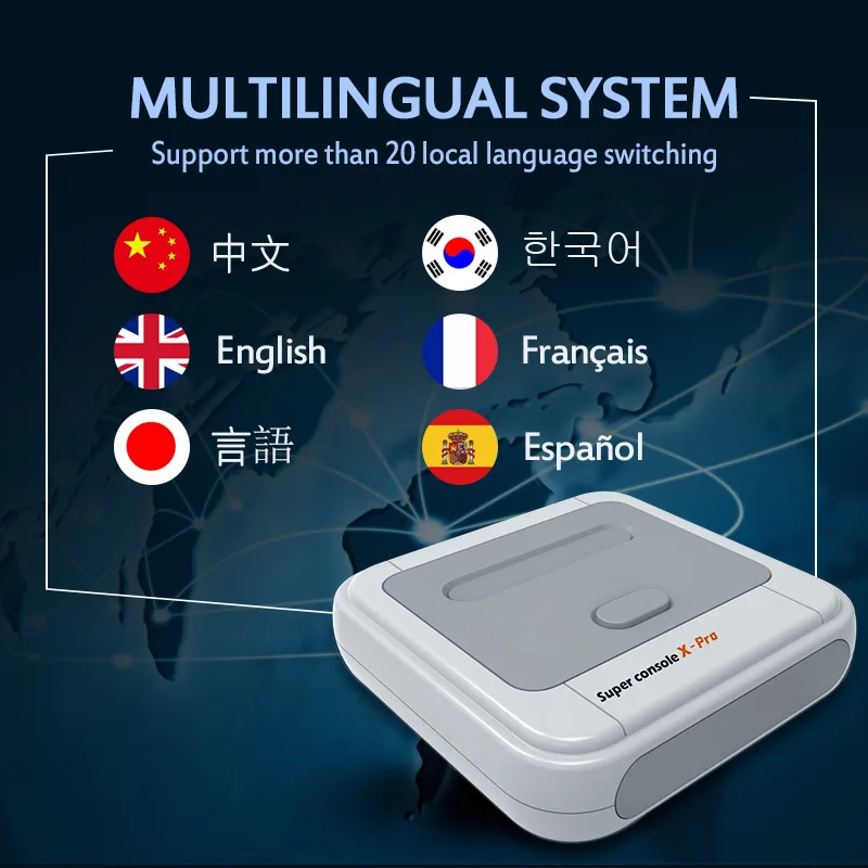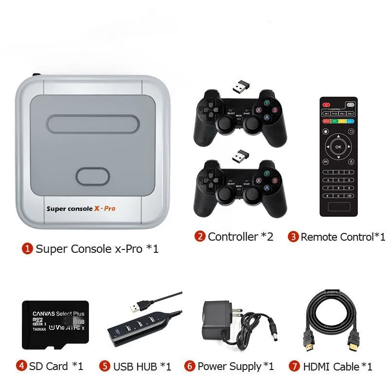 Super Console X Pro Game Box 65000+ Classic Games Game Console Support HD/AV LAN/WiFi Dual Wireless Controllers Up To 5 Players